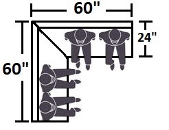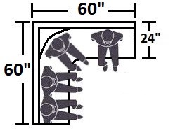 In order for a table to match with booth corner, 1 corner of the table must have a 12" Radius. This will allow a visitor to sit at corner section of booth.