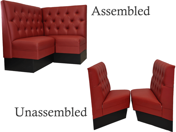 Custom Designed- Our corner diner booths are custom made for you – choose your style. material, color and sizes and we will make it exactly to your specifications.