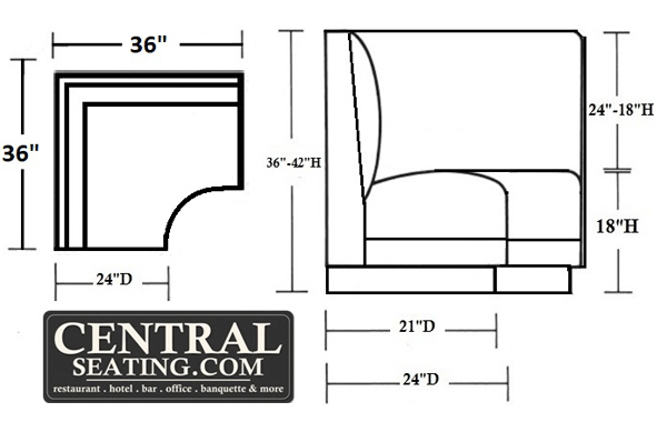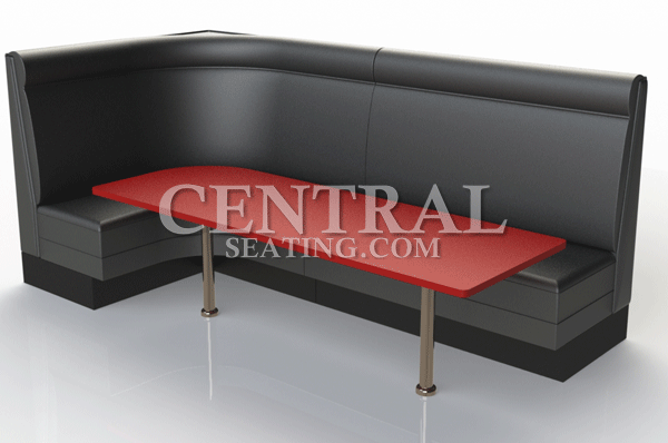 - The table for this booth must have a 12" radius corner to match the curve of the backrest and seat. It is crucial to consider this fact when calculating the cost of around the back corner booth.