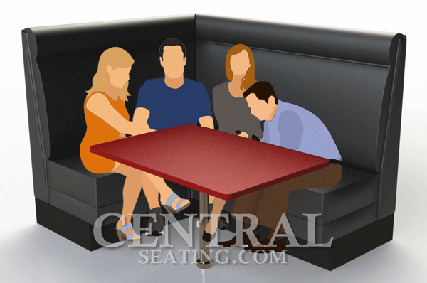 The 90-degree booth is also known as an L-shaped booth. The 90-degree booth tends to offer the look and feel of a more modern and trendy décor theme as opposed to a plush and opulent theme. Using a range of 90-degree corner booths bring symmetry and balance to your overall look.