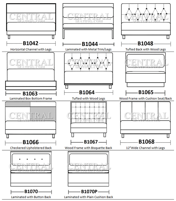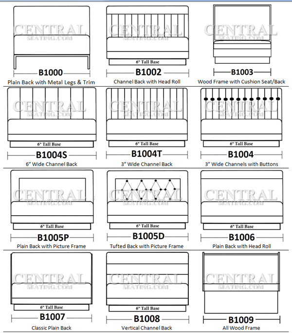 - Booth style? We have Plain Back, Channel Back, Channel with Head Roll, Tufted Back and more.